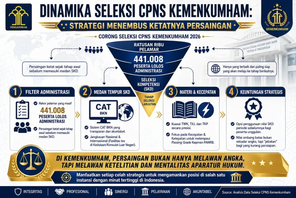 Dalam beberapa tahun terakhir, proses seleksi CPNS Kemenkumham semakin menunjukkan dinamika dan tantangan tersendiri bagi para calon abdi negara. Seleksi tahun 2024 misalnya, menjadi salah satu momentum penting yang menggambarkan persaingan ketat dan prosedur yang semakin transparan dan terstruktur dalam menjaring SDM terbaik.