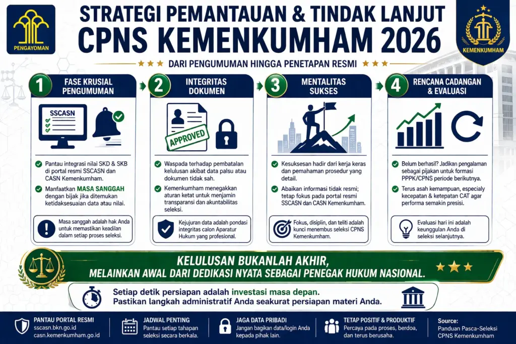 Dengan pemahaman proses seleksi yang detail serta strategi persiapan yang smart, impian menjadi bagian dari aparatur sipil negara Kemenkumham semakin nyata. Jadikan pengalaman dan informasi sebagai pijakan menggapai tujuan berbakti di institusi yang menangani urusan hukum dan pemasyarakatan ini.