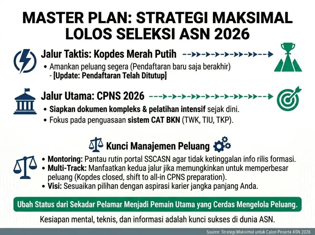 Memilih jalur yang tepat bukan hanya soal memilih antara cpns atau kopdes, tetapi bagaimana mempersiapkan diri dan memahami setiap konsekuensi dari pilihan tersebut. Dengan kesiapan mental, teknis, dan informasi yang lengkap, setiap peserta seleksi ASN dapat meningkatkan peluang sukses dan berkontribusi nyata bagi pembangunan nasional.