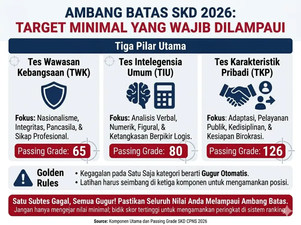 Dengan demikian, latihan soal harus fokus pada tiga komponen ini untuk memenuhi dan bahkan melampaui standar passing grade agar peluang lolos semakin besar.