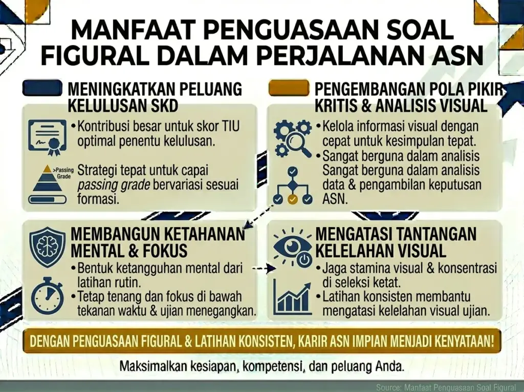 Penguasaan soal figural membawa manfaat yang jauh melampaui seleksi SKD. Apa saja keuntungan yang bisa dirasakan oleh peserta yang berhasil menguasainya? Simak ulasannya berikut ini.